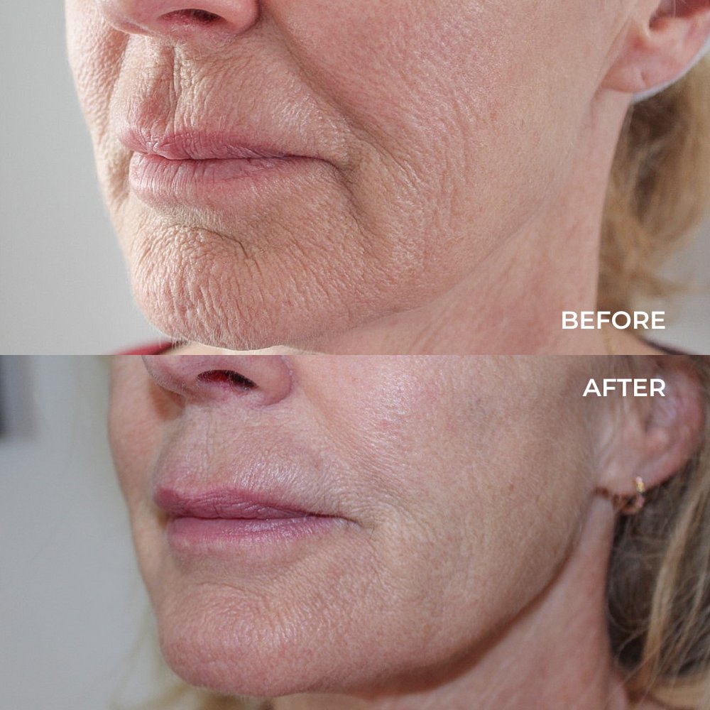 PROTOCOL: PDO threads to upper perioral area and lower cheeks with M-SEQNC Serum twice daily (AM/PM) and 0.5mm dermaroller. M-SEQNC Multi-Action Cream twice daily (AM/PM)